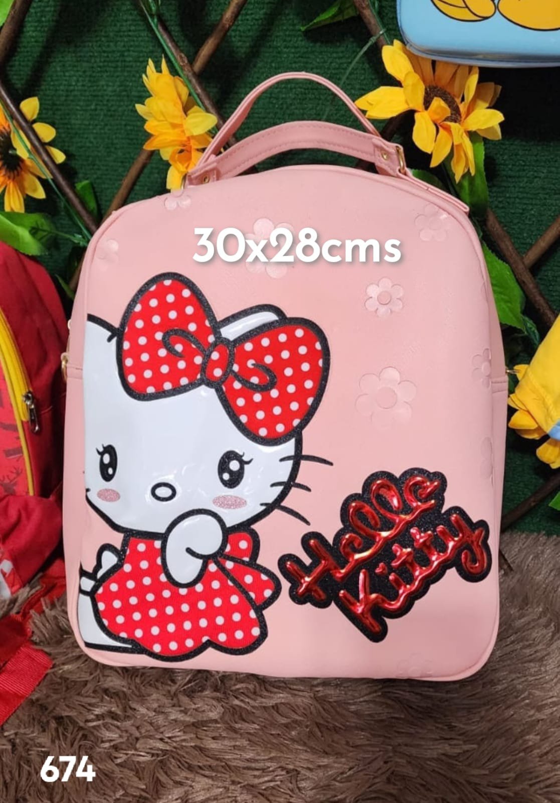 cartera mochila imagen en 3d, sin bolsas a los lados, un solo fondo kitty