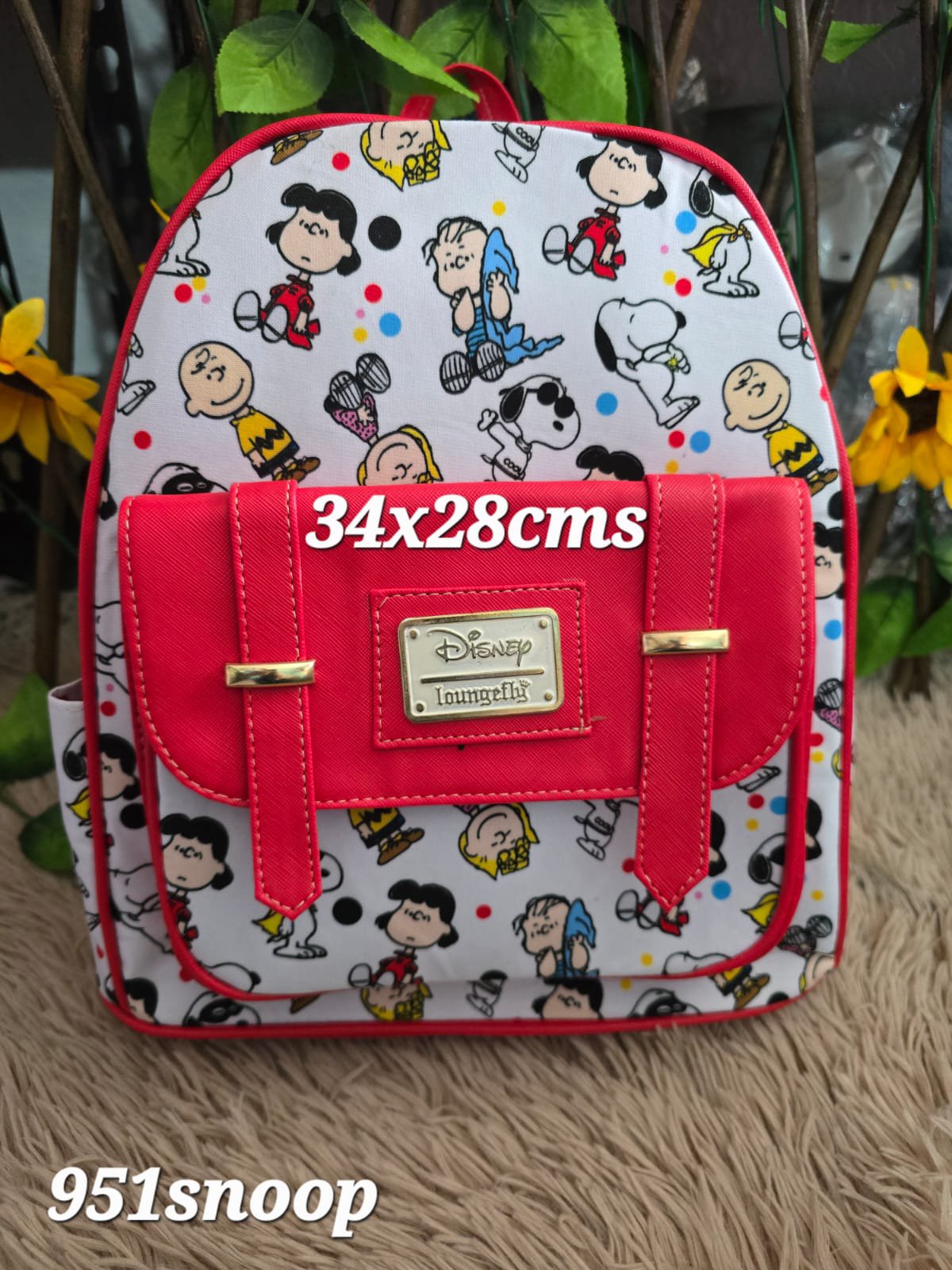 mochila de tela placa en medio Snoopy